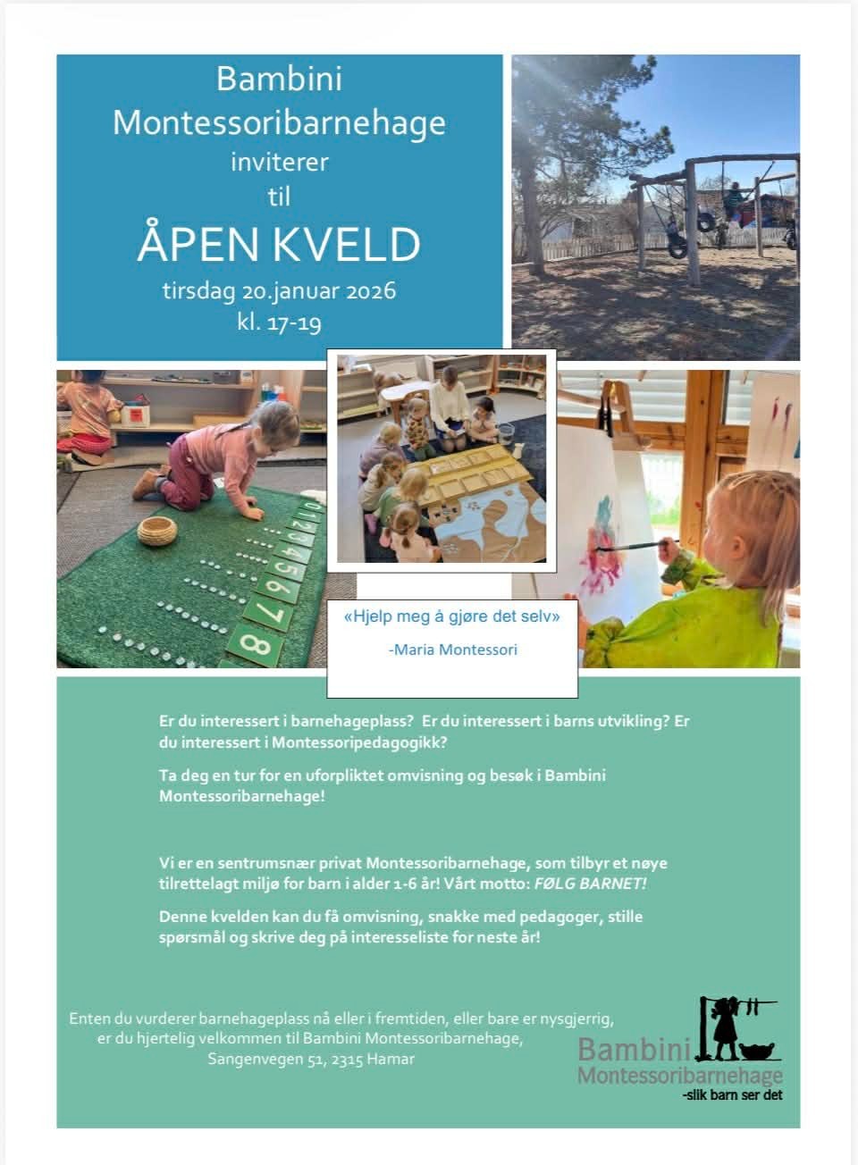 13.01.2026 15.10🌸 Vil du være vikar i barnehage? Hos oss får du muligheten til å jobbe i en trygg og godt etablert Montessoribarnehage med fokus på barnas utvikling og trivsel. - Vil du gjøre en forskjell i barns hverdag? Bli vikar hos oss og ta del i et varmt miljø med fokus på selvstendighet, læring og utvikling. - Vil du være en del av Bambini Montessoribarnehage? Vi søker vikarer som vil bidra til et trygt og inspirerende miljø for barna.