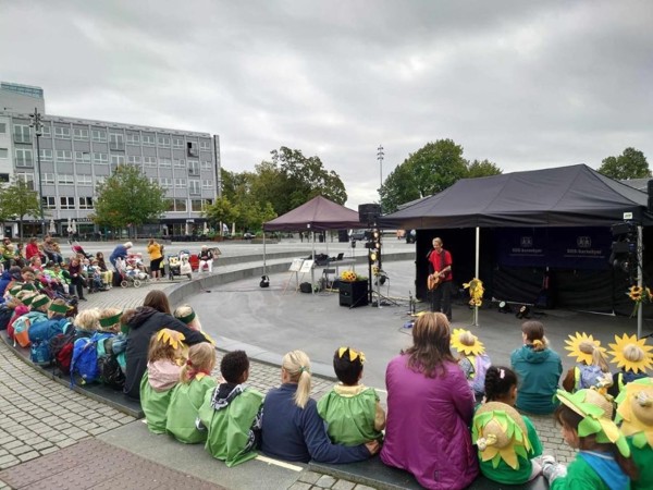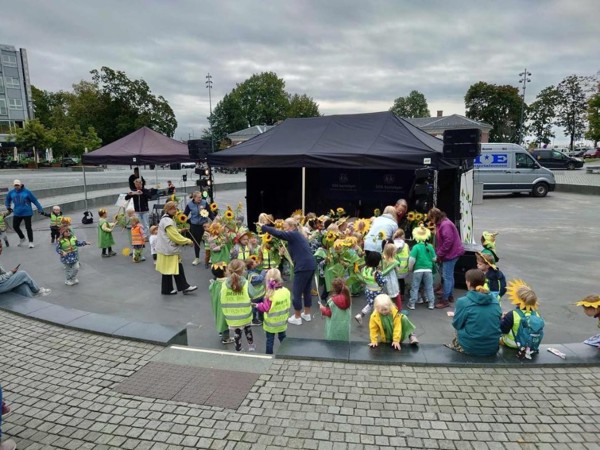 Etter 4 år uten solsikkefest var vi i år klare for å delta på solsikkefest igjen. Alle 5 avdelingene deltok, med stor og flott hjep fra 6 elever fra Hamar Montessoribarnehage og gruppe 2.