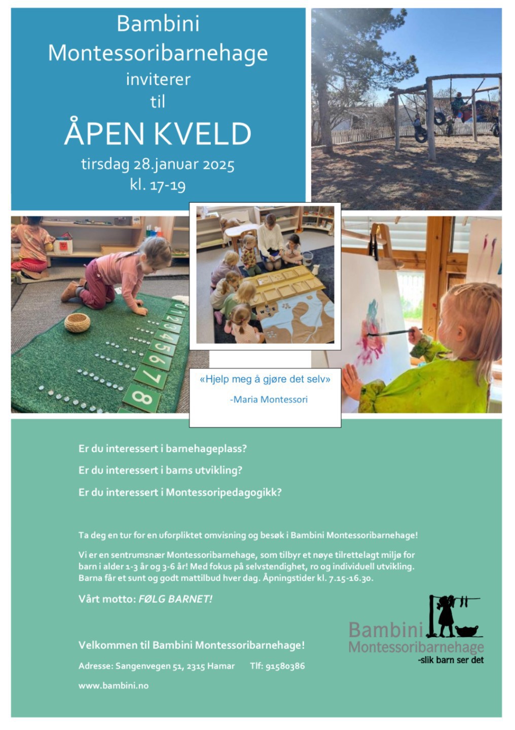 Velkommen til Åpen Kveld hos oss! 🤗 Kom og lær mer om vår barnehage og hvordan montessoripedagogikken kan gi barna en fantastisk start på livet!